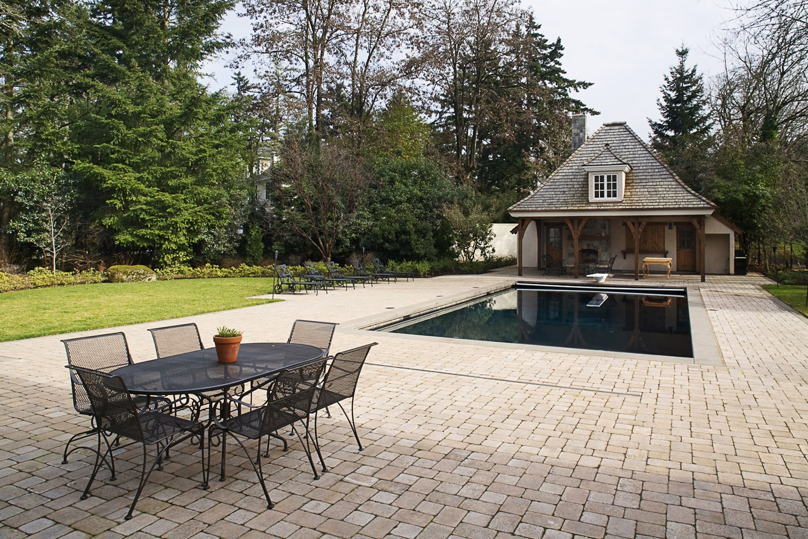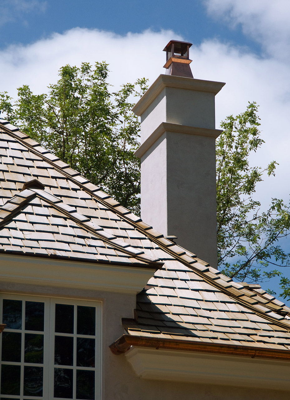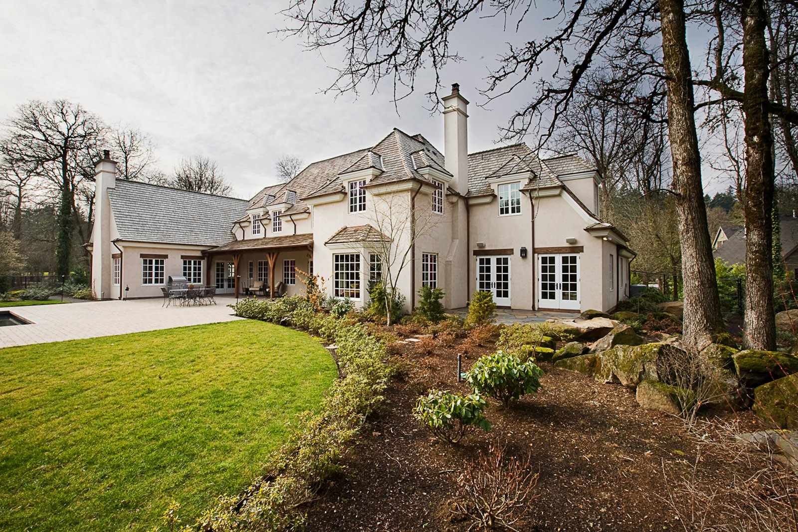 This home designed by Jeffery L. Miller Architects, showcases some of our finest work. The many dormers, sweeping roofline, and fine detail of cornice work give this home a true old-world feel that most homes built today only hint at. The concrete stucco system features hidden expansion joints and a finish that looks quite old, while maintaining the highest levels of weather resistance, The wood windows are set in the wall, and the shutters are fully functional. Inside and out, the true mortise and tenon timber trusses and beam work were all handcrafted and hand distressed. The cabinetry was handmade by a single craftsman, and features full inset doors and pin hinges. Interior design was done by Marcie Krauss. The project included a pool and pool house, with landscape design by KLA Landscape Architects.